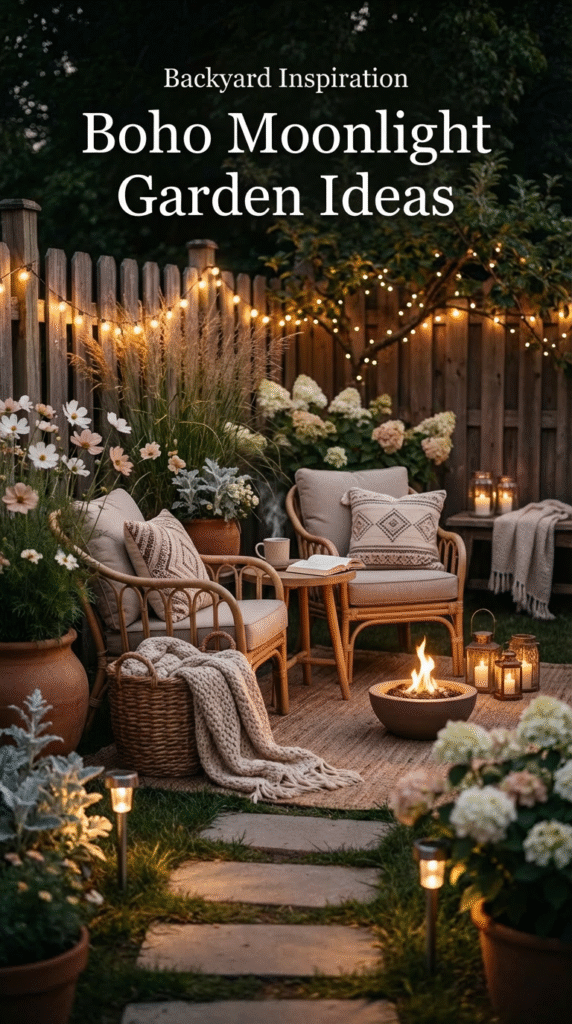 Working through this list step by step turns the idea of a boho moonlight garden into a real space that feels calm, cozy, and ready for many quiet evenings outside.