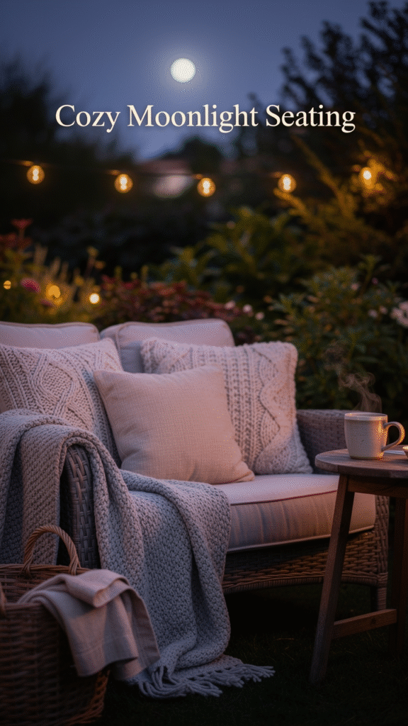 In climates with cooler evenings, a portable outdoor heater or radiant heat panel can be a good partner to blankets. Place it just outside the main seating cluster so it warms the area without blasting anyone directly. This works especially well for those who tend to get chilled easily but still want to enjoy the garden for a bit after sunset.